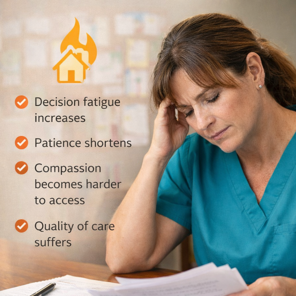 When you are supported, seen, and given room to breathe, your care remains what it has always been: compassionate, steady, and deeply human.